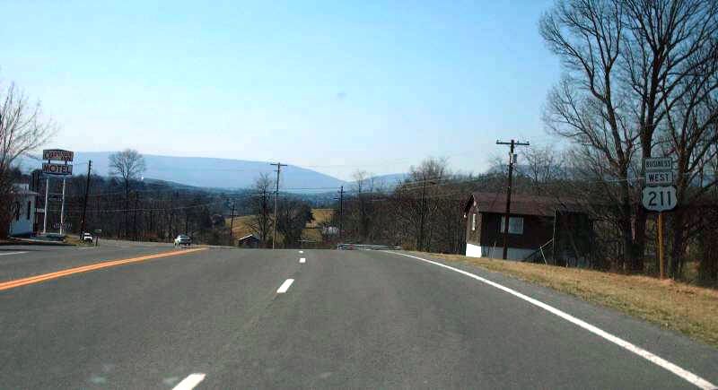 | Beginning down westbound US 211/US 522 Business. Photo by Mapmikey, taken October 23, 2008. | |