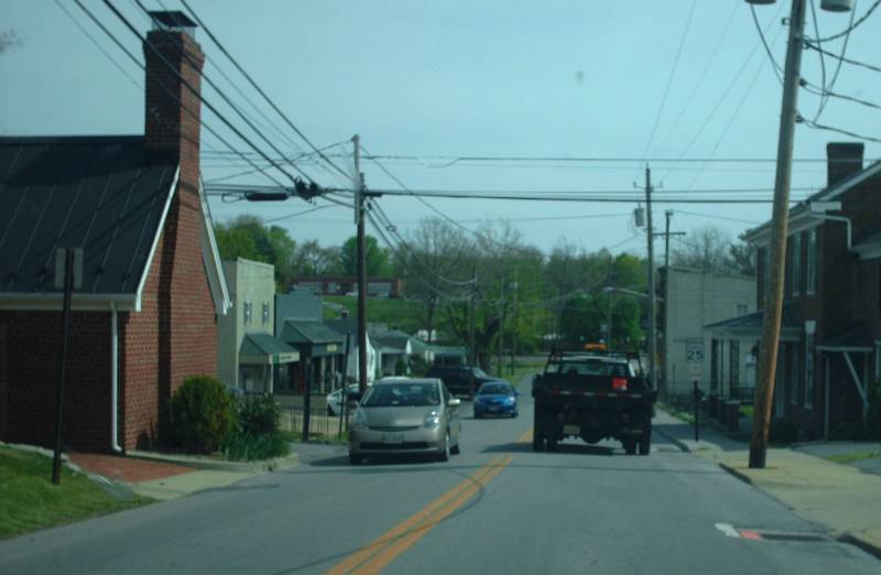 | Heading south on Pecan St and what had been the beginning of VA 75 from 1940-64. Photo by Mapmikey, taken spring 2011. |