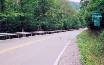| This is the east end of the gap, looking westbound on VA 80 at the Dickinson-Russell line. Photo by Mapmikey, taken August 1, 2008. |