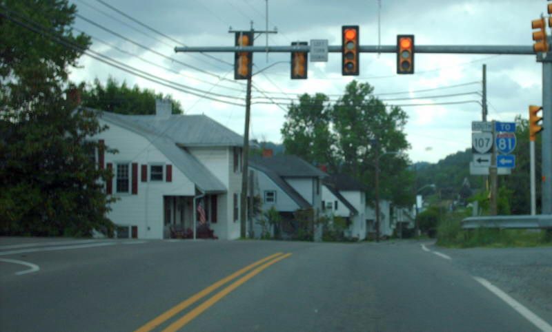 | VA 107 coming to I-81. Photo by Mapmikey, taken May 18, 2007. | |