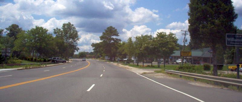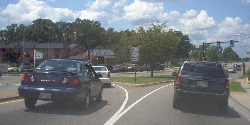 | From 1979-94, VA 162 continued west through Williamsburg, ending at US 60. This is the view of that ending from US 60 westbound. VA 162 started to the left. Photo by Mapmikey, taken July 8, 2006. | |