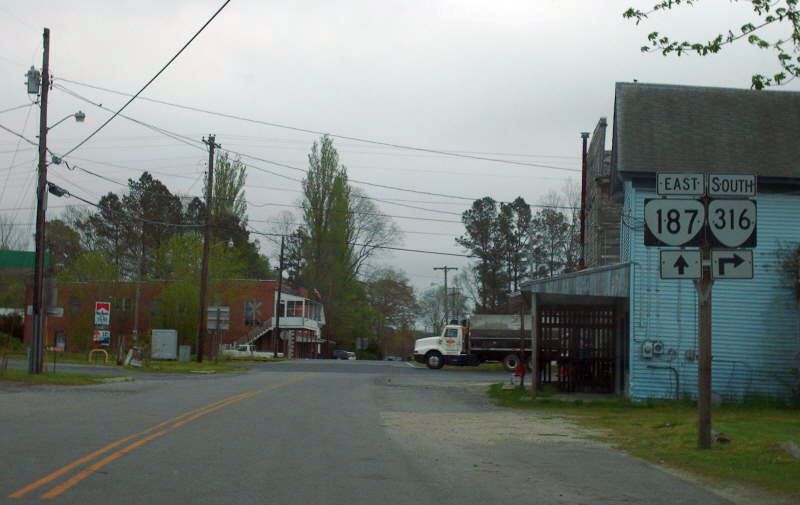 | VA 187 west at VA 316 in Bloxom. Photo by Mapmikey, taken April 26, 2007. | |