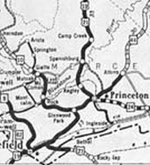 | Adjustments: In 1933, WV 71 was extended at Glenwood in 2 directions, replacing US 19-21 east to the new US 19-21 below Princeton and replacing US 19-21 south to the new US 19-21 in Green Valley. County maps that I have seen 1933-49 label both legs as WV 71 instead of 71N and 71S. WVDOT annual reports also suggest no split routing names and that both legs were 71. By 1964 (per WVDOT e-mail), the northern leg was officially WV 71 Spur (now CR 19/29). On 12/23/77 (WVDOT CO), WV 71 was rerouted south of Rock to instead continue southwest replacing CR 15 to Montcalm and CR 11 south to US 52 Bluewell. The old route to Sandlick and Newhope became CR 71/13; WV 20 remains on its former overlay; WV 20 to US 19 became CR 19/33. Improvements: Paved upon inception; no multilane segments Comment: The two legs of WV 71 baffle me. Other routes did have a split routing explicitly labeled.